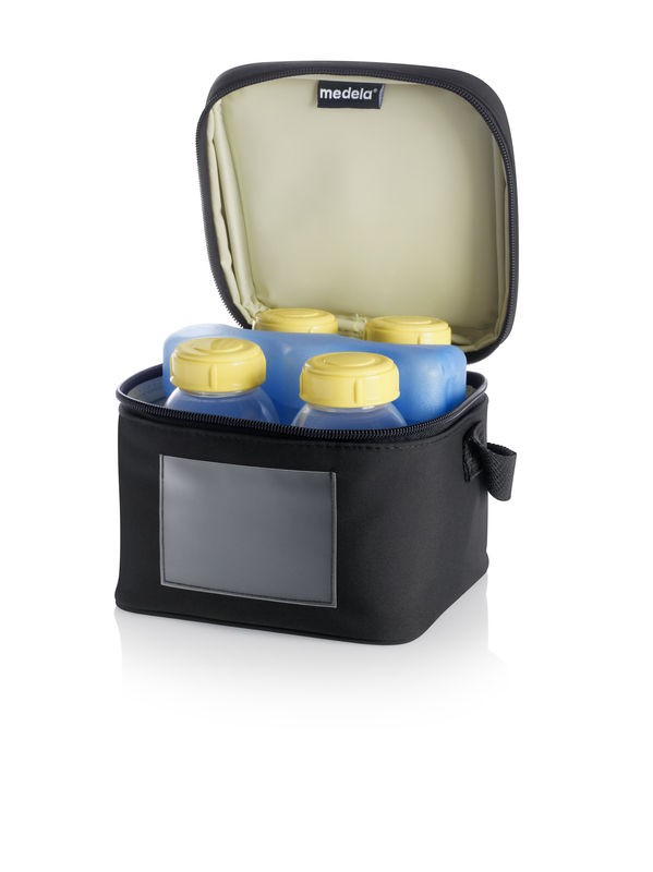 It comes with four Medela breast milk bottles and a separate cooling element.