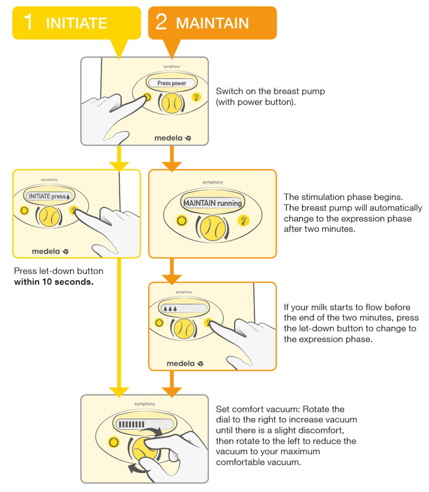These two technologies are included in the Symphony rental breast pump as the two Symphony PLUS pumping programs, INITIATE and MAINTAIN.